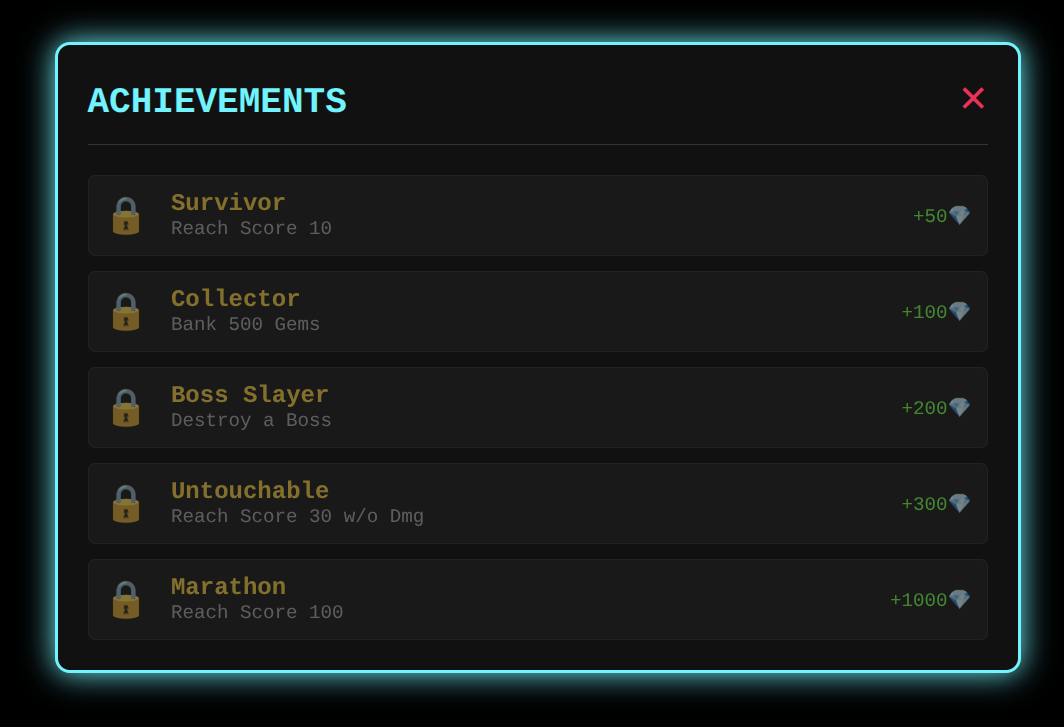 - ๐ Achievements: Complete challenges to earn massive Gem bonuses.